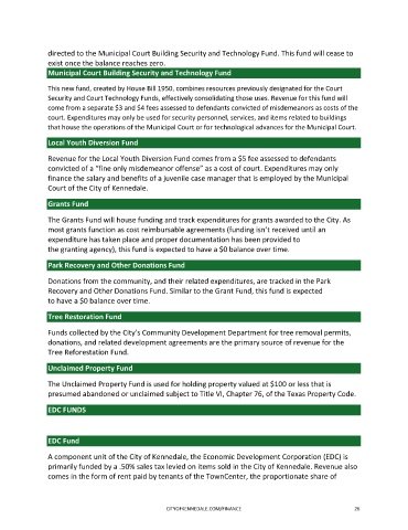 Security and Court Technology Funds, effectively consolidating those uses. Revenue for this fund will