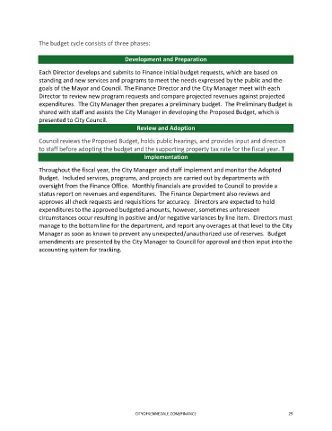 expenditures. The City Manager then prepares a preliminary budget. The Preliminary Budget is