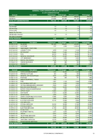 TOTAL CITY ADMINISTRATION $ 742,130 $ 804,698 $ 760,384 $ 868,804