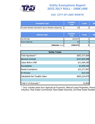 * Only includes totals from Agricultural Properties, Mineral Lease Properties, Personal Property Commercial, Personal Property