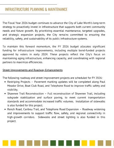 high-growth corridors. Sidewalks and street lighting is also funded in this