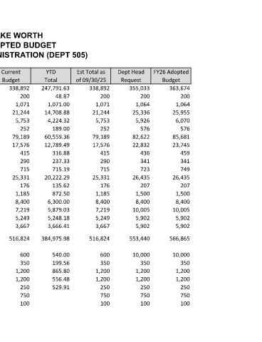 Account Account FY25 Adopted Current YTD Est Total as Dept Head FY26 Adopted