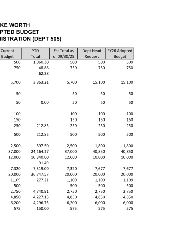 Account Account FY25 Adopted Current YTD Est Total as Dept Head FY26 Adopted