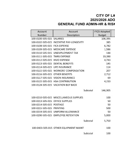GENERAL FUND ADMIN-HR & RISK MGMT (DEPT 505 PROGRAM 015)