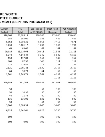 Account Account FY25 Adopted Current YTD Est Total as Dept Head FY26 Adopted