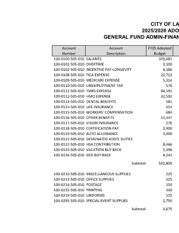 100-0100-505-010 SALARIES 329,681 326,615 253,556.74 326,615 271,996 280,154