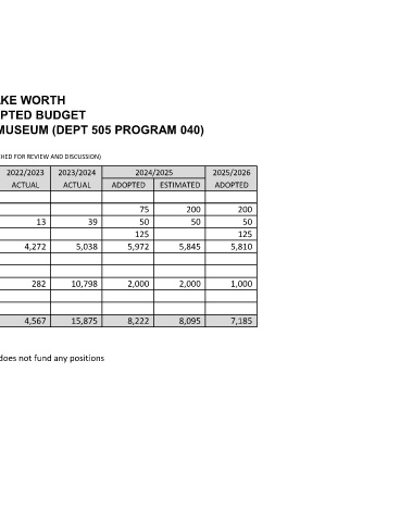 GENERAL FUND ADMIN-LW AREA MUSEUM (DEPT 505 PROGRAM 040)