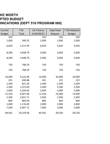 Account Account FY25 Adopted Current YTD Est Total as Dept Head FY26 Adopted