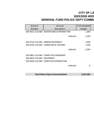 Total Police Dept-Communications 1,051,403 1,188,537 803,004 1,066,675 1,125,126 1,131,503