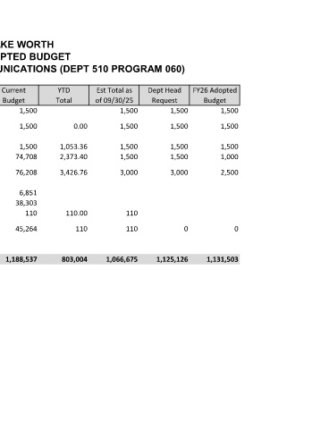 Account Account FY25 Adopted Current YTD Est Total as Dept Head FY26 Adopted