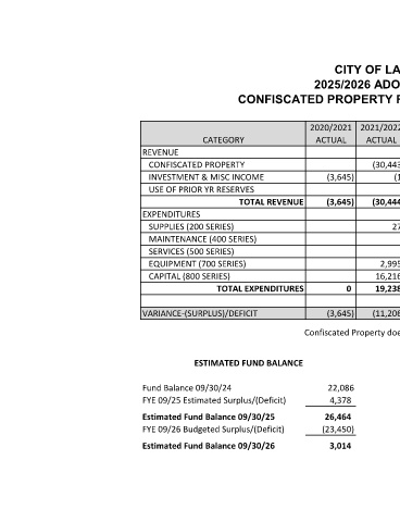 Fund Balance 09/30/24 22,086 As currently presented, the Confiscated Property Fund would end