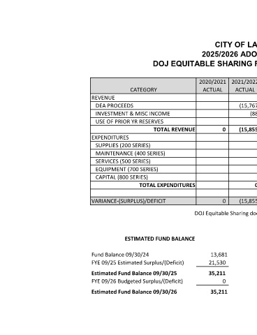 DOJ EQUITABLE SHARING FUND SUMMARY (FUND 125)