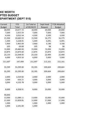 Account Account FY25 Adopted Current YTD Est Total as Dept Head FY26 Adopted