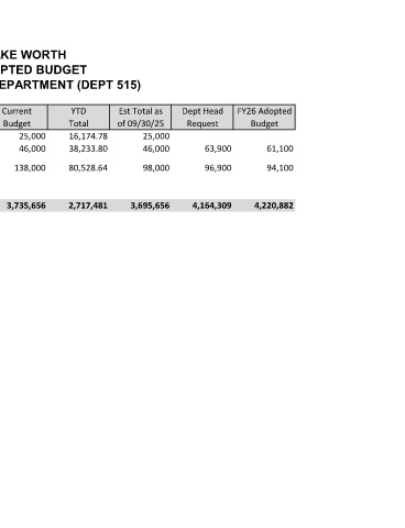 Account Account FY25 Adopted Current YTD Est Total as Dept Head FY26 Adopted