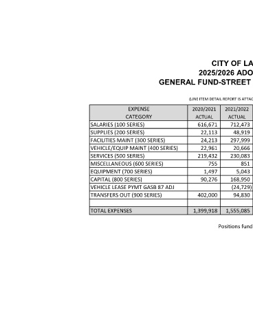 GENERAL FUND-STREET DEPARTMENT (DEPT 520)