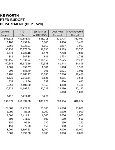 Account Account FY25 Adopted Current YTD Est Total as Dept Head FY26 Adopted