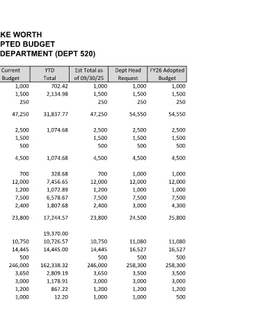 Account Account FY25 Adopted Current YTD Est Total as Dept Head FY26 Adopted