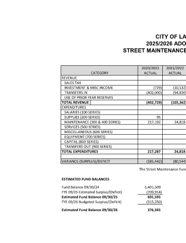 STREET MAINTENANCE SUMMARY (FUND 107)
