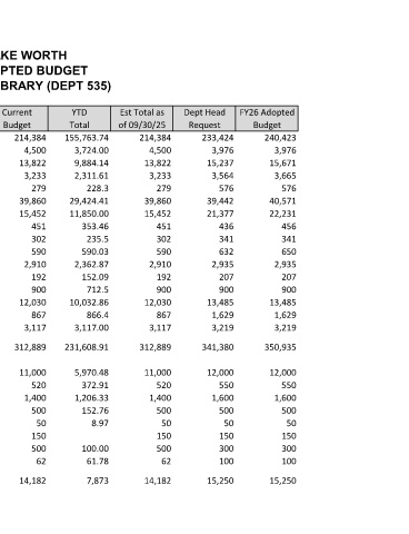 Account Account FY25 Adopted Current YTD Est Total as Dept Head FY26 Adopted