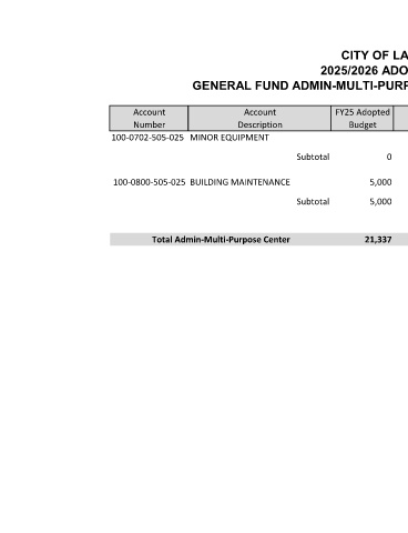 GENERAL FUND ADMIN-MULTI-PURPOSE CTR (DEPT 505 PROGRAM 025)