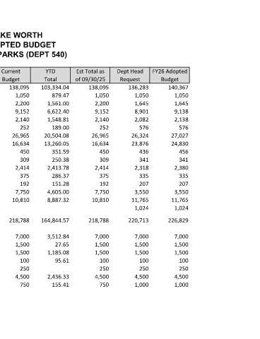 Account Account FY25 Adopted Current YTD Est Total as Dept Head FY26 Adopted