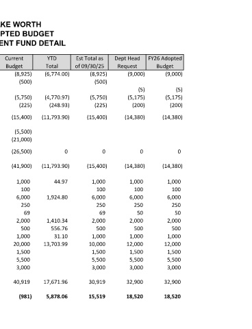 Account Account FY25 Adopted Current YTD Est Total as Dept Head FY26 Adopted