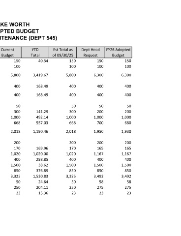 Account Account FY25 Adopted Current YTD Est Total as Dept Head FY26 Adopted