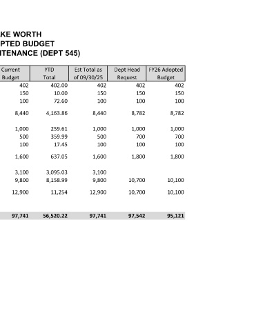 Account Account FY25 Adopted Current YTD Est Total as Dept Head FY26 Adopted