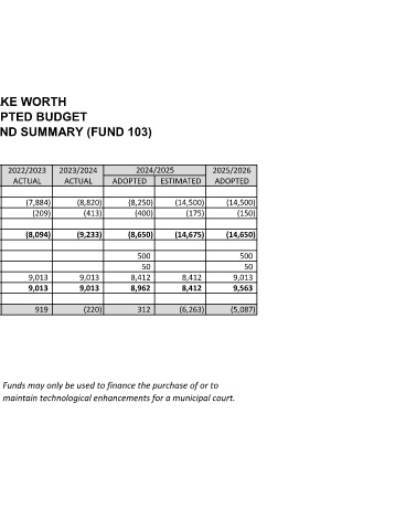 Estimated Fund Balance 09/30/255 20,013 maintain technological enhancements for a municipal court.