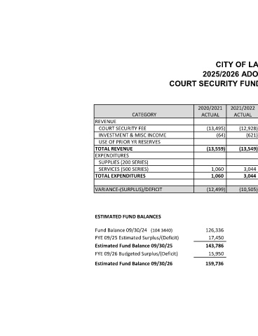 COURT SECURITY FUND SUMMARY (FUND 104)