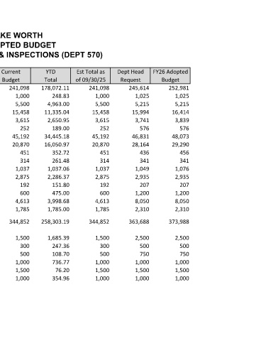 Account Account FY25 Adopted Current YTD Est Total as Dept Head FY26 Adopted