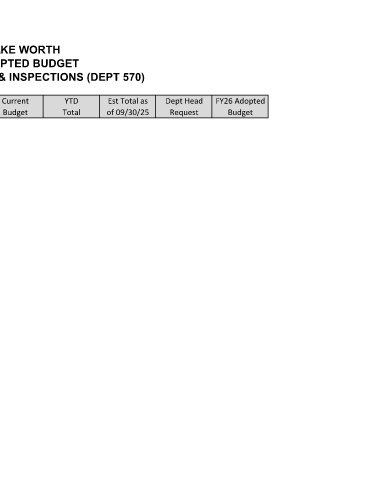 CITY OF LAKE WORTH 2025/2026 ADOPTED BUDGET GENERAL FUND-PERMITS & INSPECTIONS (DEPT 570) Account Account FY25 Adopted Current YTD Est Total as Dept Head FY26 Adopted Number Description Budget Budget Total of 09/30/25 Request Budget