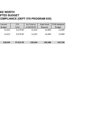 Account Account FY25 Adopted Current YTD Est Total as Dept Head FY26 Adopted