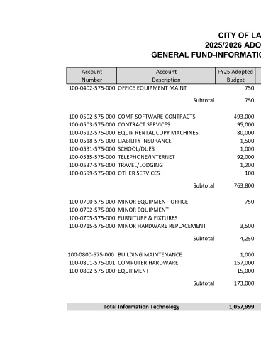 GENERAL FUND-INFORMATION TECHNOLOGY (DEPT 575)