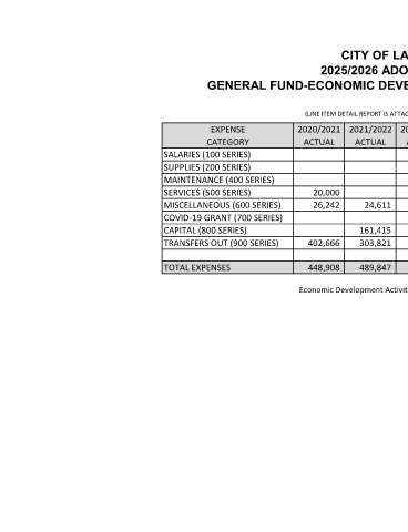 GENERAL FUND-ECONOMIC DEVELOPMENT ACTIVITIES (DEPT 580)