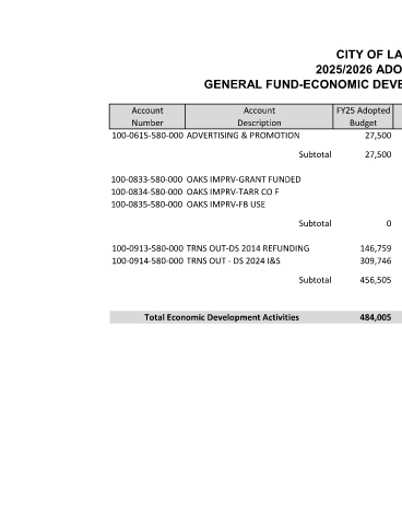 GENERAL FUND-ECONOMIC DEVELOPMENT ACTIVITIES (DEPT 580)