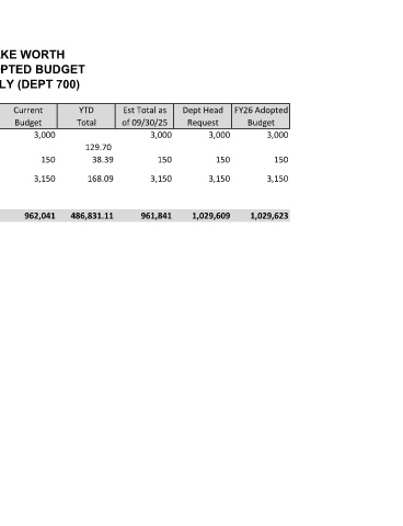 Account Account FY25 Adopted Current YTD Est Total as Dept Head FY26 Adopted