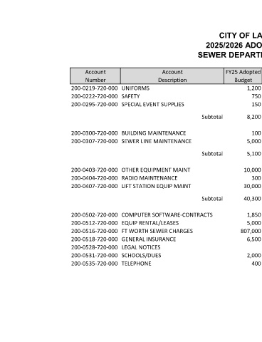 200-0516-720-000 FT WORTH SEWER CHARGES 807,000 750,000 443,976.23 750,000 800,000 800,000