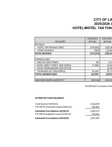 HOTEL/MOTEL TAX FUND SUMMARY (FUND 600)