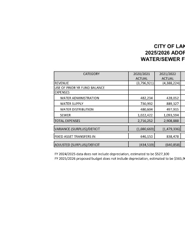 FY 2025/2026 proposed budget does not include depreciation, estimated to be $565,900