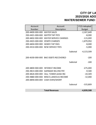 200-4400-000-000 WATER SALES -2,507,649 -2,470,000 - 1,509,248.81 -2,470,000 -2,569,723 -2,590,877