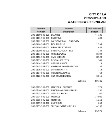 WATER/SEWER FUND-ADMINISTRATION (DEPT 505)