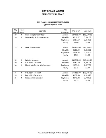 PAY PLAN B - NON-EXEMPT EMPLOYEES