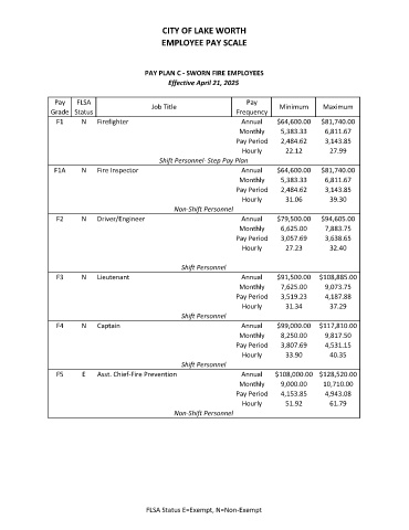 PAY PLAN C - SWORN FIRE EMPLOYEES