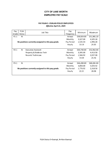 PAY PLAN E- CIVILIAN POLICE EMPLOYEES