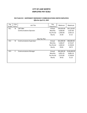 PAY PLAN ECC - NORTHWEST EMERGENCY COMMUNICATIONS CENTER EMPLOYEES
