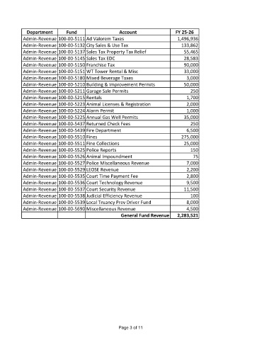 Admin-Revenue 100-00-5180 Mixed Beverage Taxes 3,000