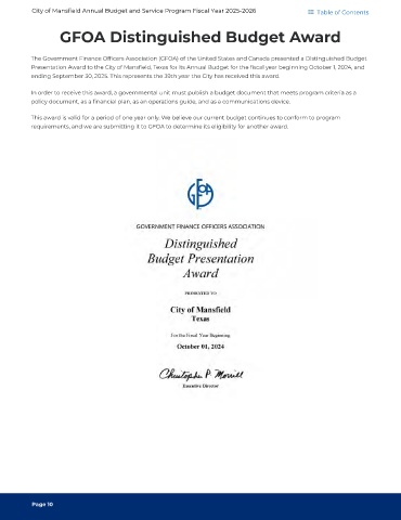 City of Mansfield Annual Budget and Service Program Fiscal Year 2025-2026 Table of Contents