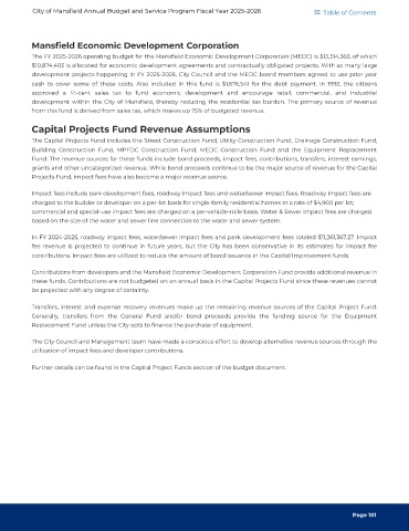 Contributions from developers and the Mansfield Economic Development Corporation Fund provide additional revenue in
