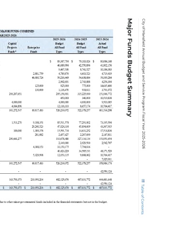 City of Mansfield Annual Budget and Service Program Fiscal Year 2025-2026 Table of Contents Major Funds Budget Summary Page 103